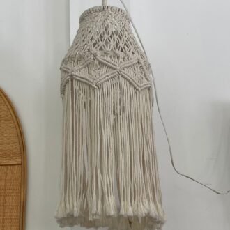 Macrame light is made from high-quality, eco-friendly, unbleached cotton, on a very sturdy metal frame. You can install it to the ceiling with everything you need for it. A light bulb is not included. Please leave me a note if you need any specific length between the ceiling and chandelier, so it will suit your room perfectly!