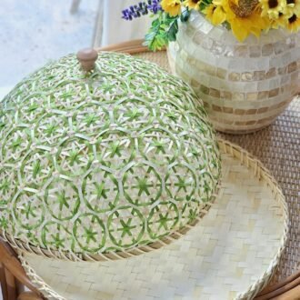 Handwoven from natural bamboo, this round food cover comes in a variety of vibrant colors and includes a sturdy base—perfect for keeping your food protected in style.
